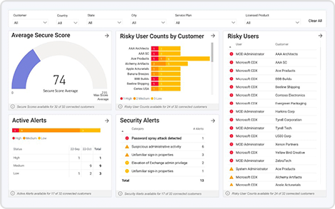 Security Manager deckt Sicherheitsrisiken für alle von Ihnen verwalteten Kunden auf. In dieser Tour erfahren Sie, wie Sie Millionen von Sicherheitssignalen in verwertbare Erkenntnisse umwandeln und die Schwachstellen, die sofort behoben werden müssen, nach Priorität ordnen.