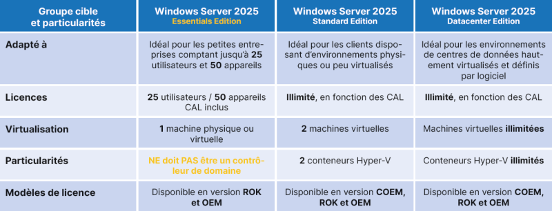 Windows Server 2025 introduit un nouveau niveau fonctionnel de domaine et de structure globale - avec des options de mise à l'échelle étendues et une technologie de pointe :